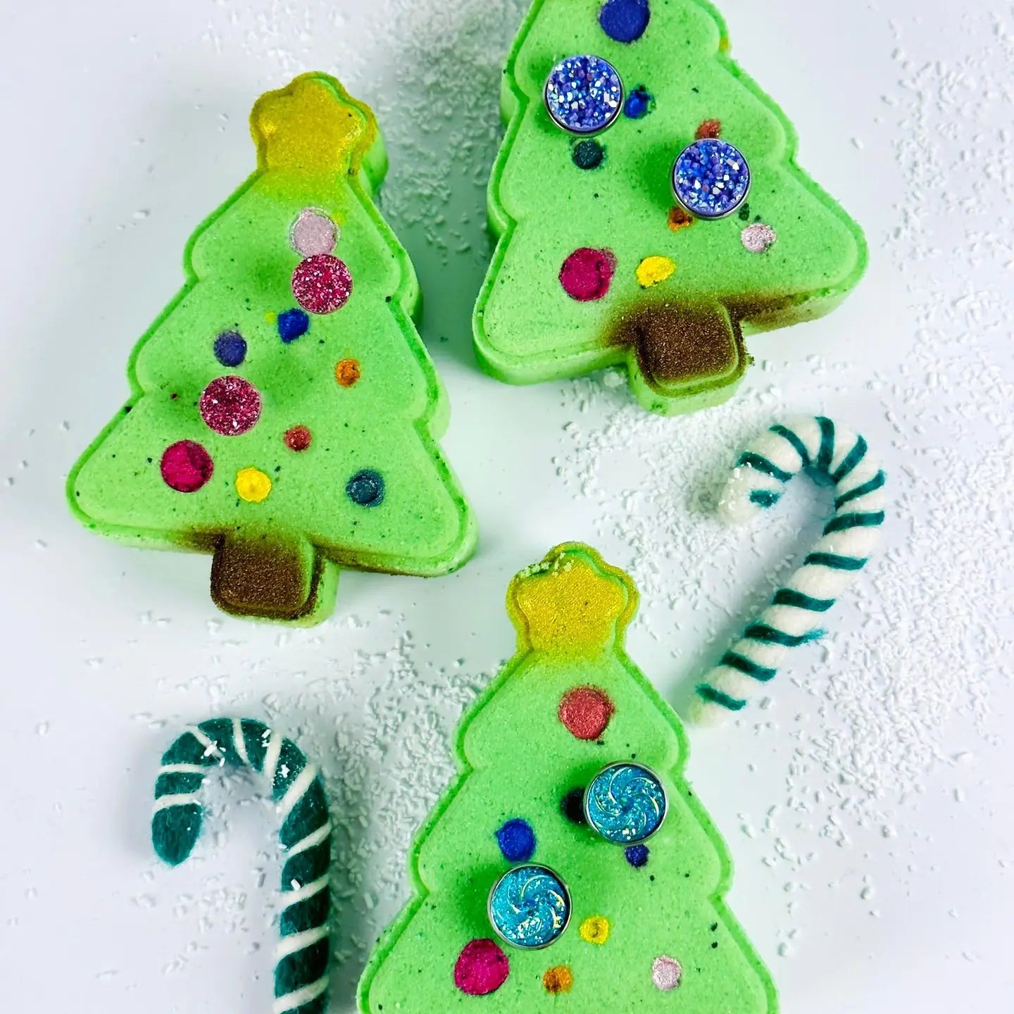 Tinsel on the holiday tree was all the rage in the 1970s'. Everyone had a tinsel tree and our version is definitely a fun twist on this nostalgic memory. Enjoy creamy bubbles, skin softening notions of avocado oil and cocoa butter and best of all a fun pair of Texas made druzy earrings to don on for all your holiday gatherings. What are druzy earrings?? Druzy refers to the tiny crystals often found in geodes, that form on top of colorful minerals. Our druzy gems are a synthetic version of the real minerals and crystals found in nature. They are easy to wear and definitely will add a hint of sparkle to every outfit.