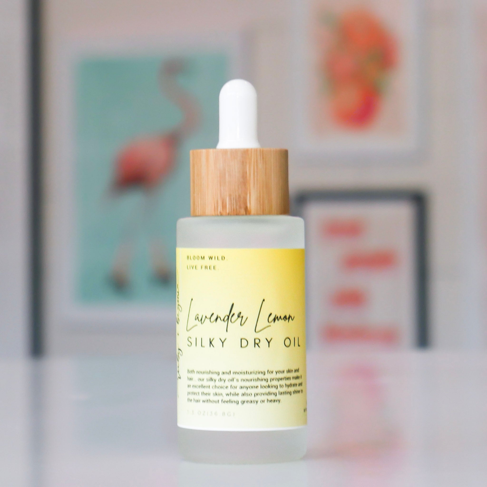 Nourishing and moisturizing for your skin AND hair.. our silky dry oil is made with fabulous oils like Olive, Macadamia, Argon, Rosemary + Sunflower extracts and so many more!! Hydrating, shine inducing, and all without feeling greasy or heavy!