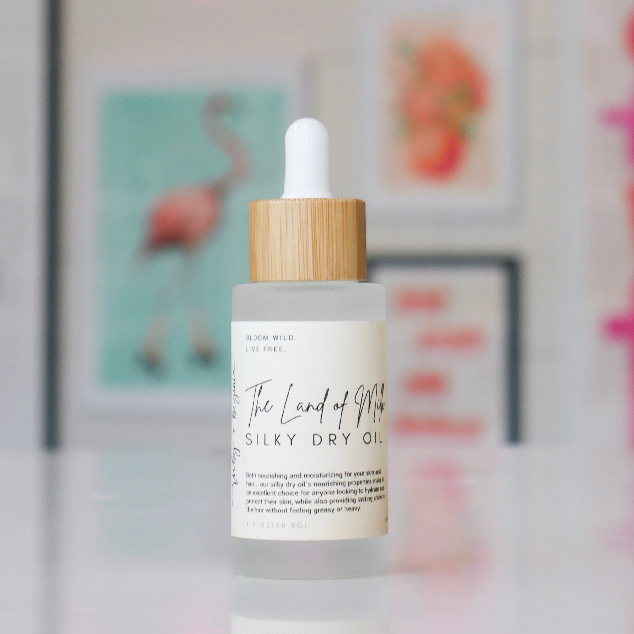 Nourishing and moisturizing for your skin AND hair.. our silky dry oil is made with fabulous oils like Olive, Macadamia, Argon, Rosemary + Sunflower extracts and so many more!! Hydrating, shine inducing, and all without feeling greasy or heavy!