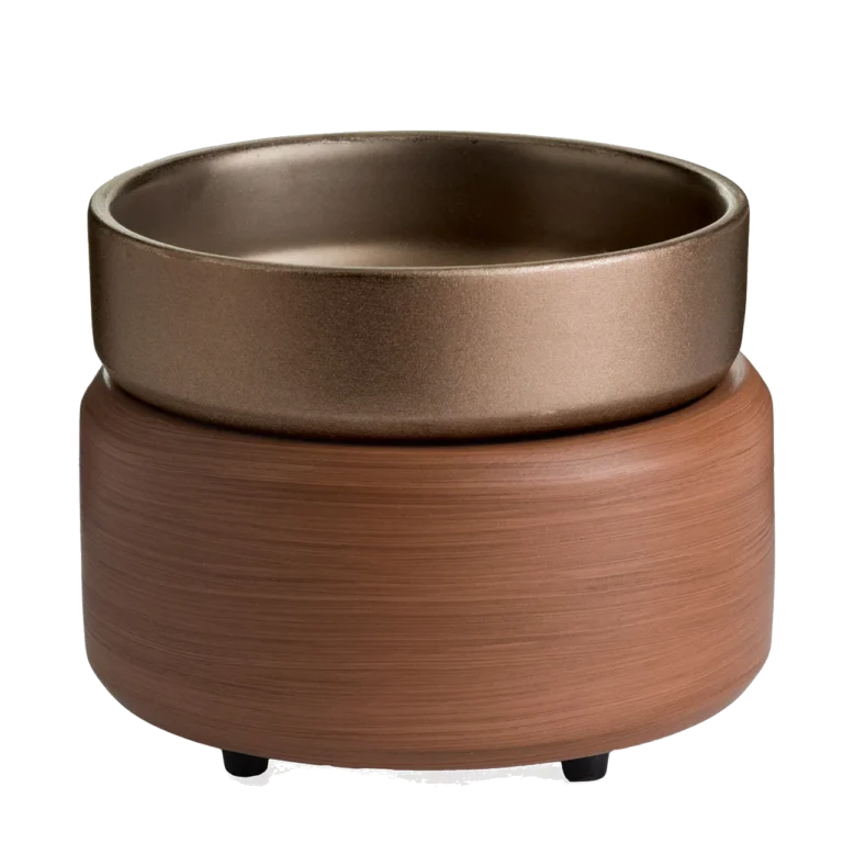 The Pewter Walnut 2-in-1 Fragrance Warmer features gold-toned pewter, deep earth tones, and an upscale feel. Simply place your favorite candle on the warming plate, or add wax melts to the dish, turn it on, and enjoy your favorite fragrance as it spreads through the room.