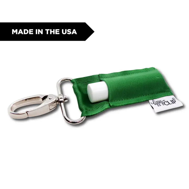 The LippyClip® Lip Balm Holder is a Chapstick holder keychain. It holds all standard-sized lip balms and easily clips to a keyring, backpack, or purse hardware.
