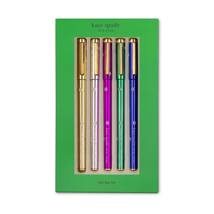 Write to your heart's content with these colorful metallic gel pens from Kate Spade New York. Each one of the five pens feature a gold clip and unique ink color.
